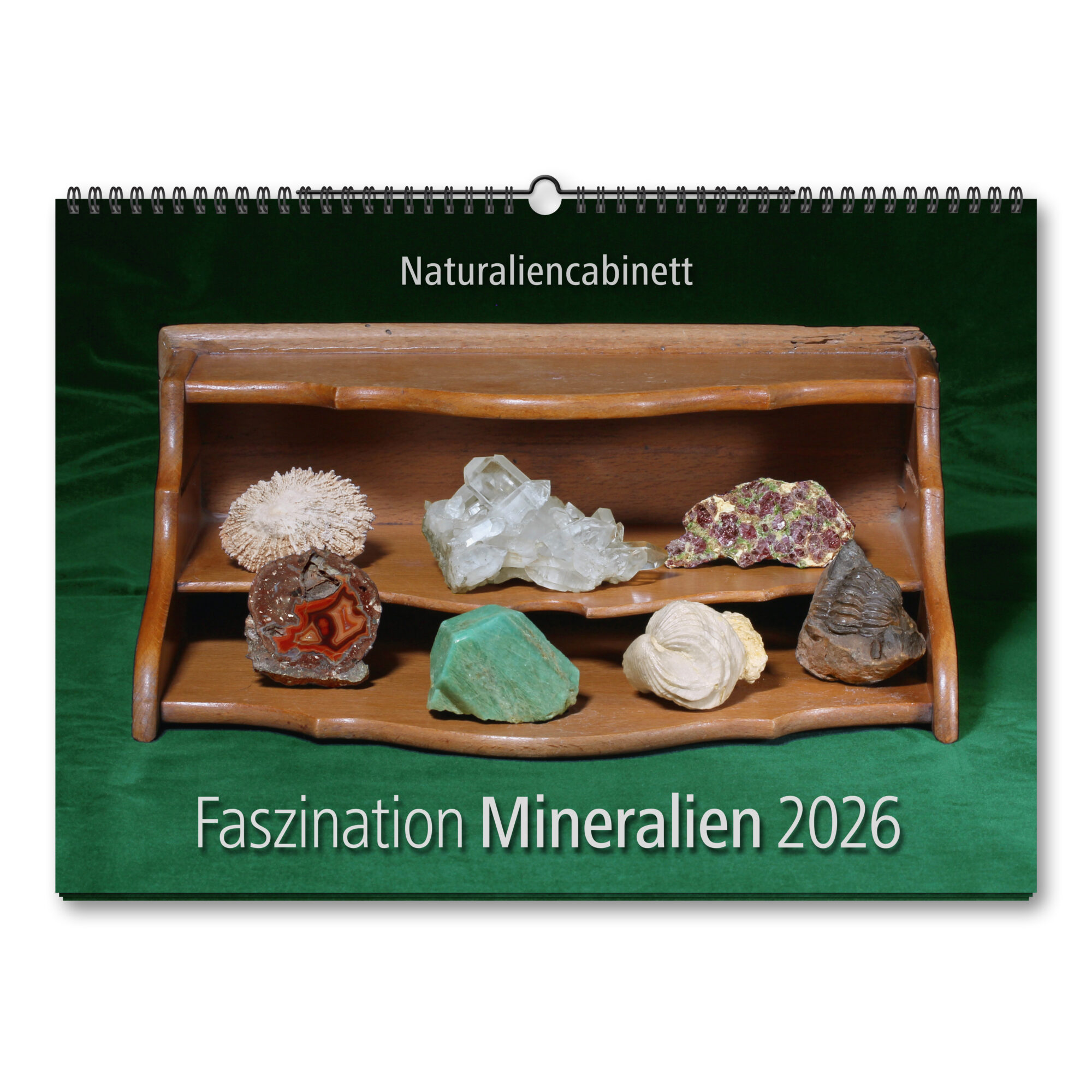 Der Wandkalender in A3 quer zeigt die Schönheit und Ästhetik von wertvollen Mineralien. Auch in diesem Jahr ist es wieder eine Zusammenstellungen mehrerer Fundstücke arrangiert in der alten Holzkiste auf schönem grünen Samt-Hintergrund. Mit aktuellen Monats-Kalendarium für das Jahr 2026 und allen Feiertagen. Auf jeder Seite befinden sich Infos zu Typ und Fundorte der Gesteine.