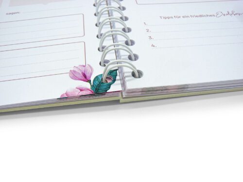 Die extra stabilen, dicken Inhaltsseiten des Hochzeitsbuch sind wunderbar mit allen gängigen Stiften zu beschreiben und sollten nicht „durchdrücken“. Das Cover ist ein hochwertiges Hardcover und somit langlebig und stabil. Durch die Kombination des Hardcover-Umschlags und einer nützlichen Ringbindung liegt das Hochzeits-Gästebuch zum Ausfüllen wunderbar eben auf dem Tisch und es kann wirklich in aller Ruhe, ungestört geschrieben oder gezeichnet werden. Ist der Tisch nicht groß, so kann man durch die Ringbindung die Seiten 360° umschlagen und das Buch liegt flach auf wenig Platz.