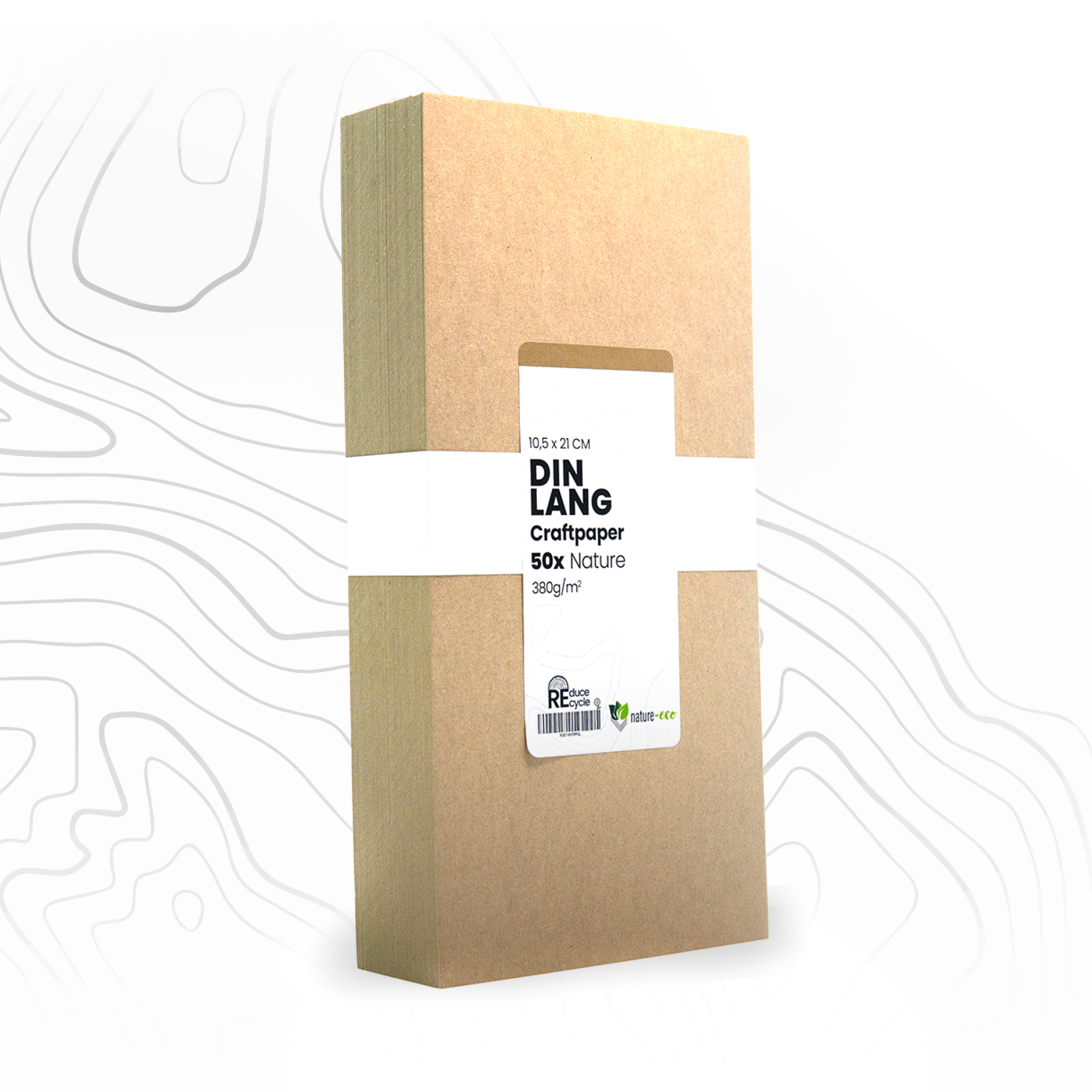 nature-eco Kraftpapier Natur / Craftpaper Nature DIN Lang (10,5 x 21 cm) Kraftkarton 380g stabil, stark, Kreativpapier, stabile Optik, exklusive Qualität, Recyclingpapier, elegante feste Optik, umweltbewußt, Kreativkarton, Bastelbogen, Kraftkarton, Karton, DIY, Postkartenkarton – 50 Blatt / Bogen / Stück