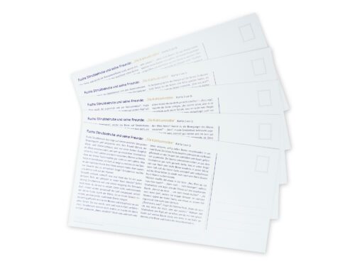 Schöne und fantasievolle Geschichten müssen nicht immer in Gestalt eines Buches daherkommen. Die Abenteuer von Strubbelrute und seinen Freunden sind nun als Postkartengeschichten erhältlich. Begebt euch gemeinsam mit dem quirligen Fuchs, seinem Freund, dem Wald- und Wiesenoktopus, und weiteren Tieren auf eine spannende Entdeckungsreise. Jede Geschichte besteht aus 5 Postkarten zum Verschicken.