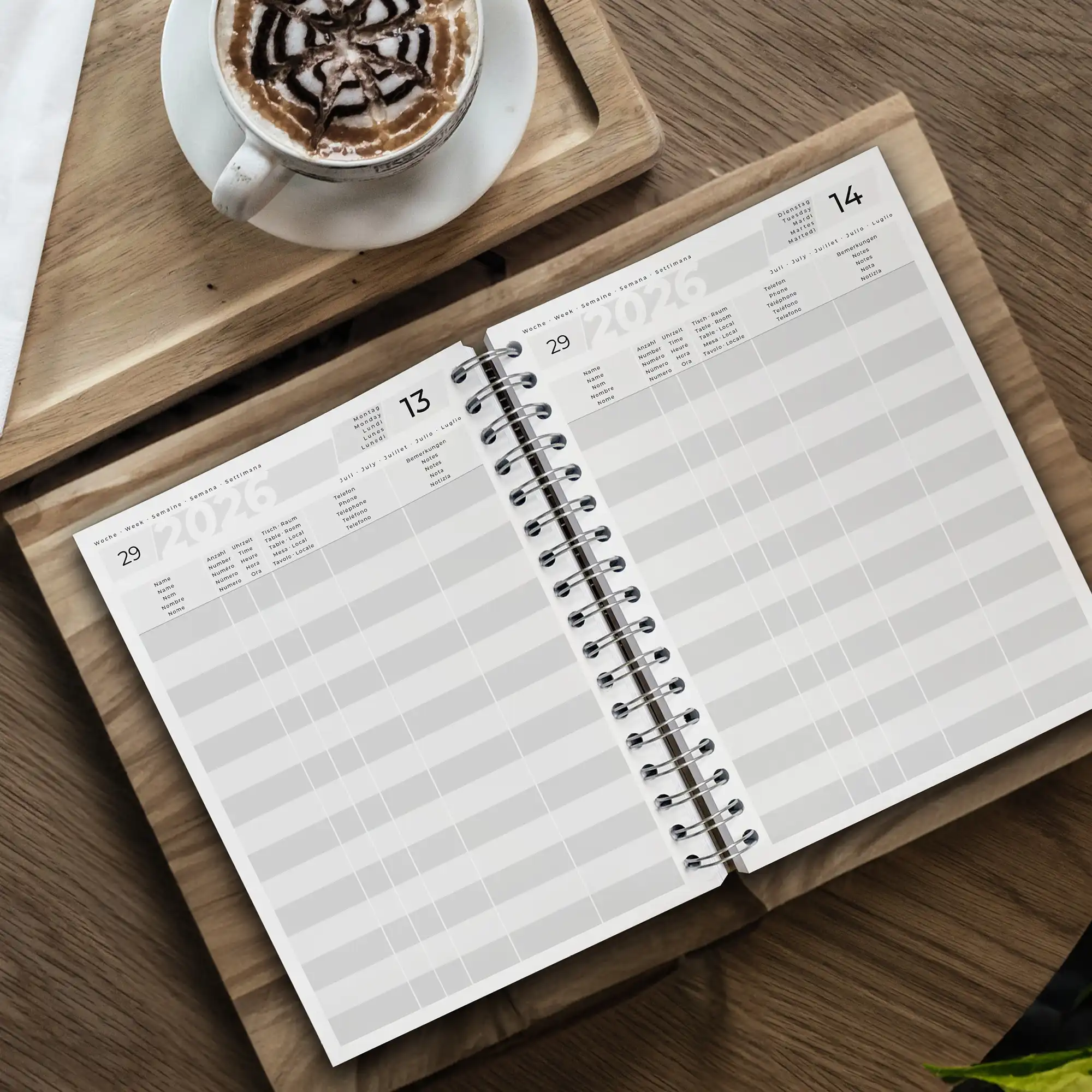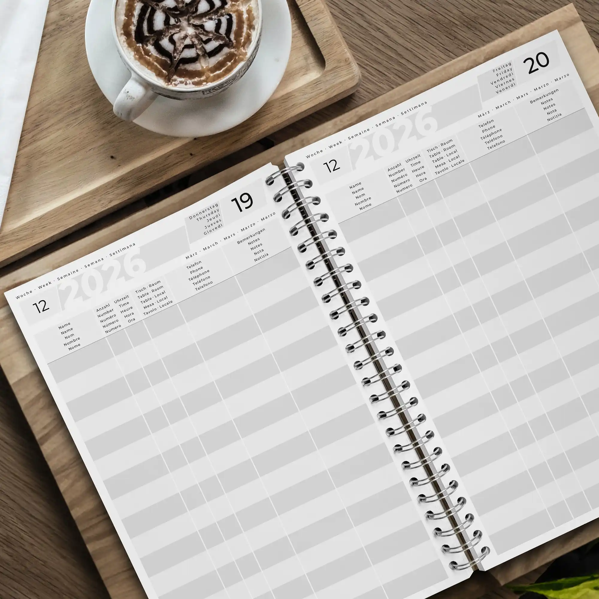 - vorgedrucktes Kalendarium für 2026