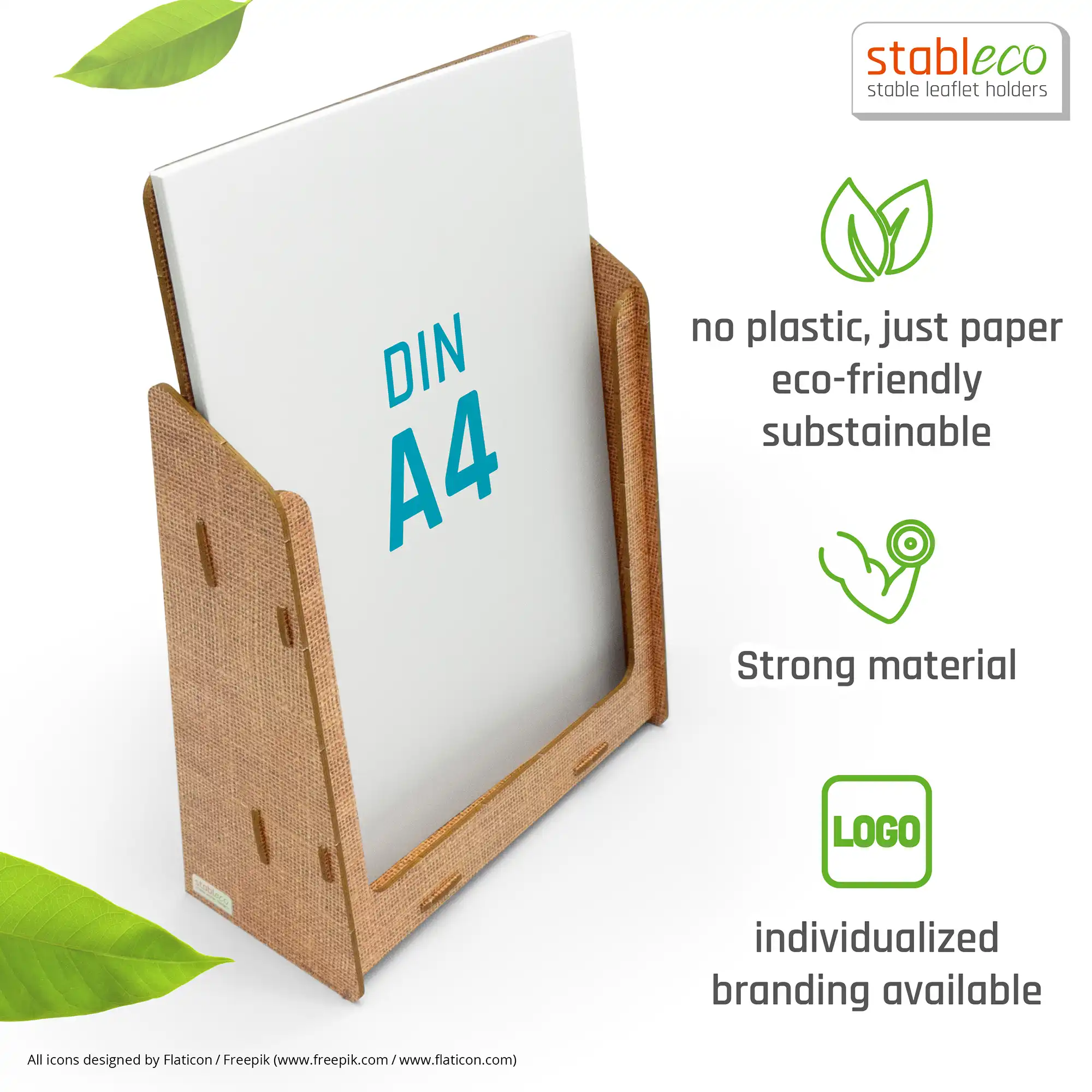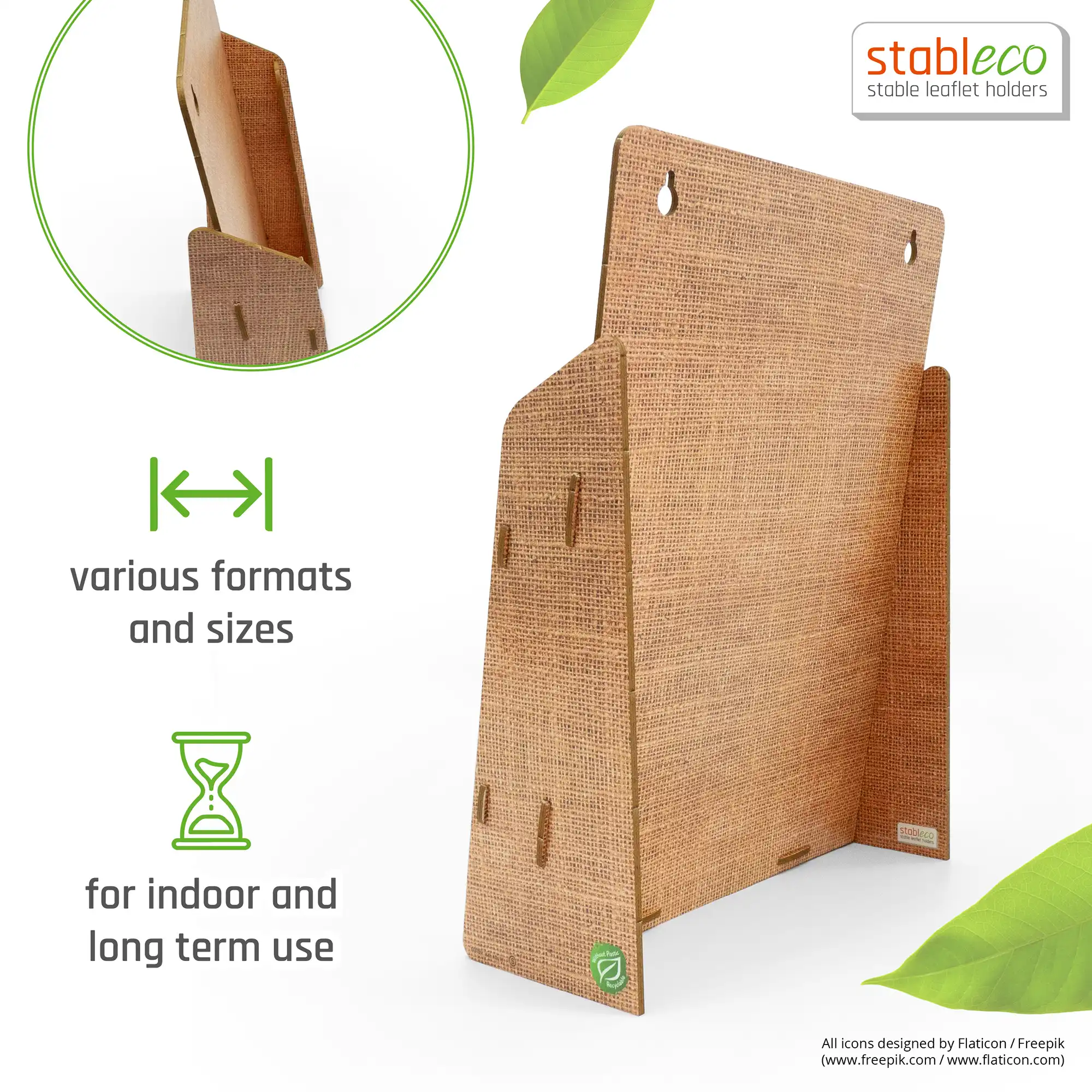 stableco 1x ökologischer Wand Prospektständer DIN A4 vertikal 1 Fach indoor Wandprospekthalter im natural Design No Plastic! Just Paper! nachhaltiger Wandflyerhalter, Flyerständer Wandmontage
