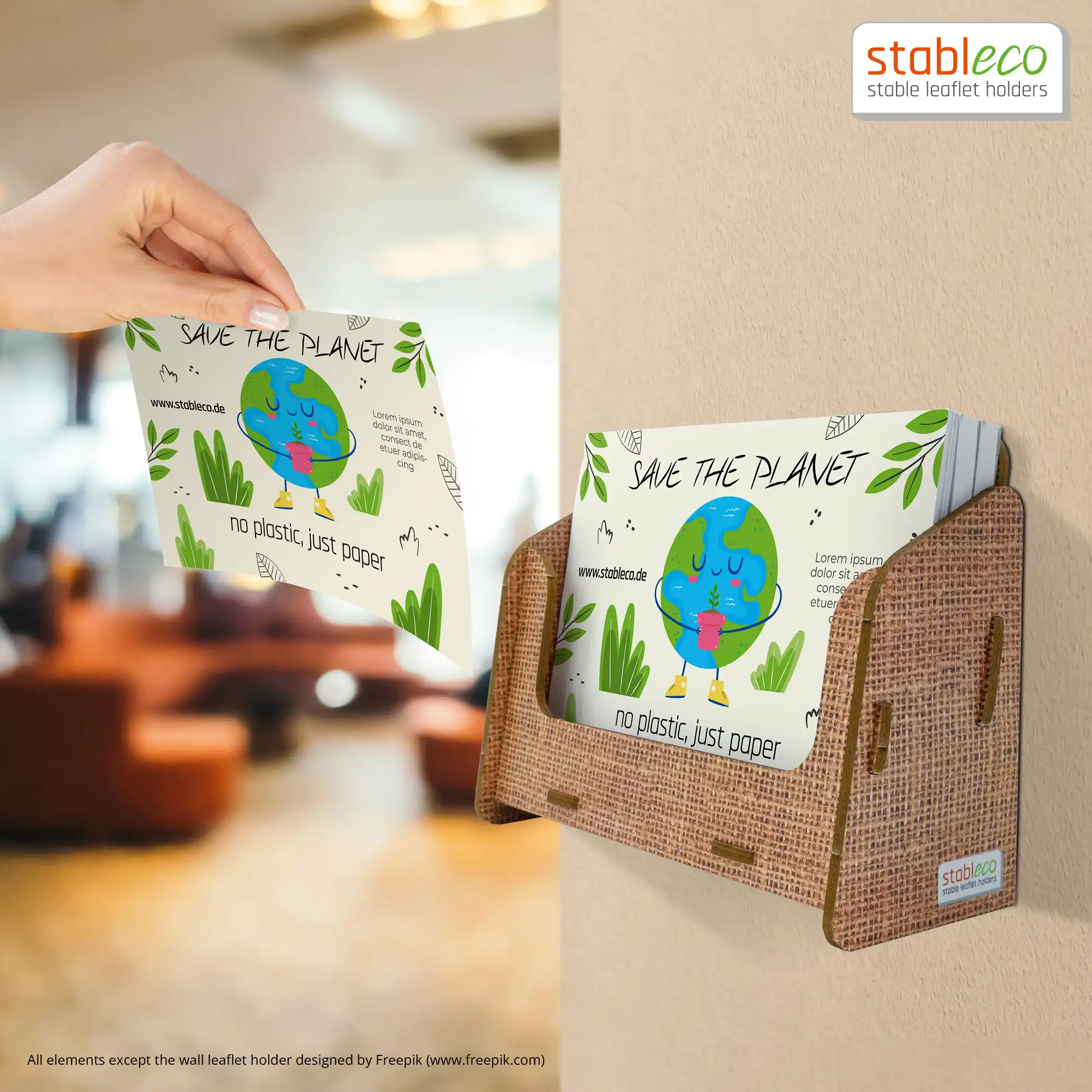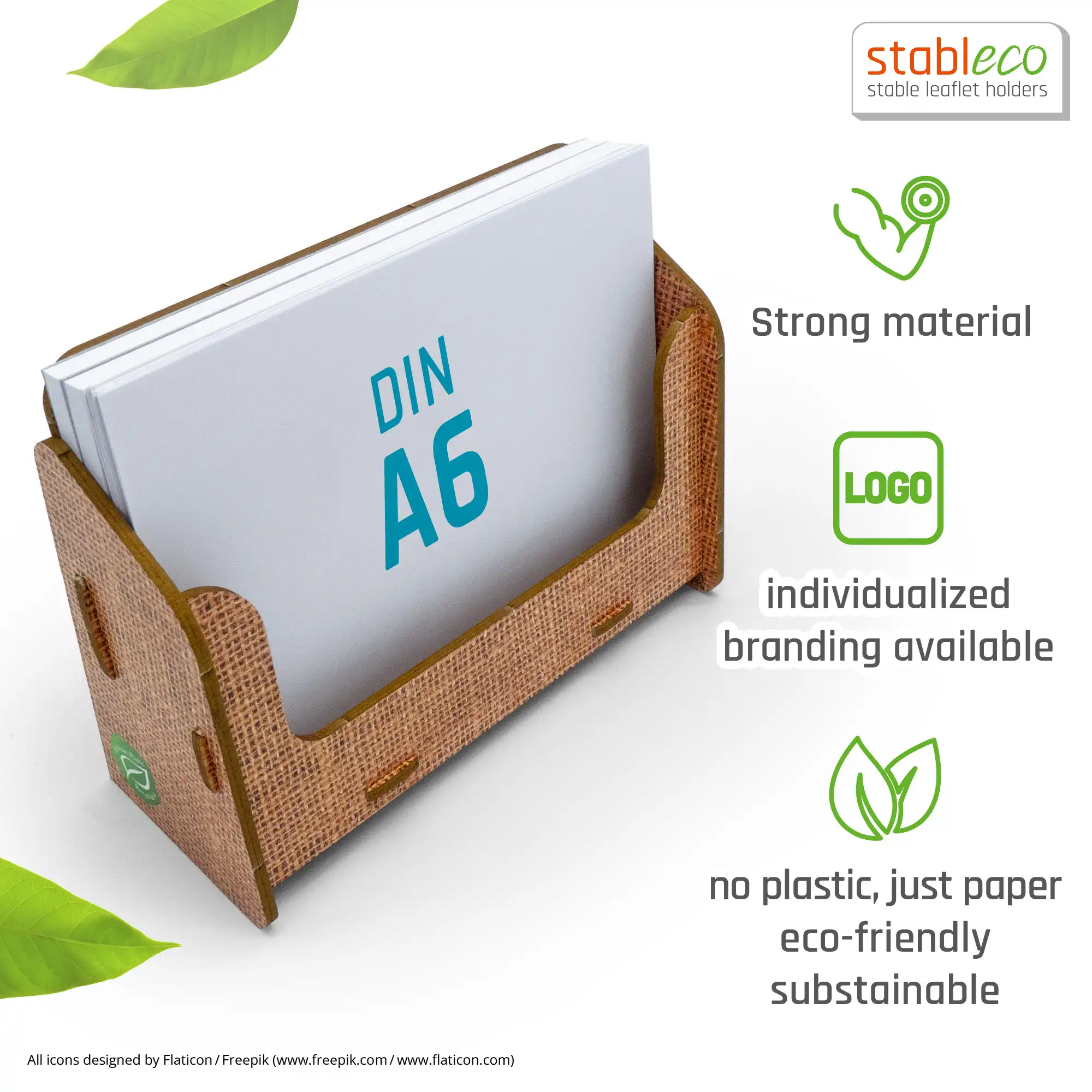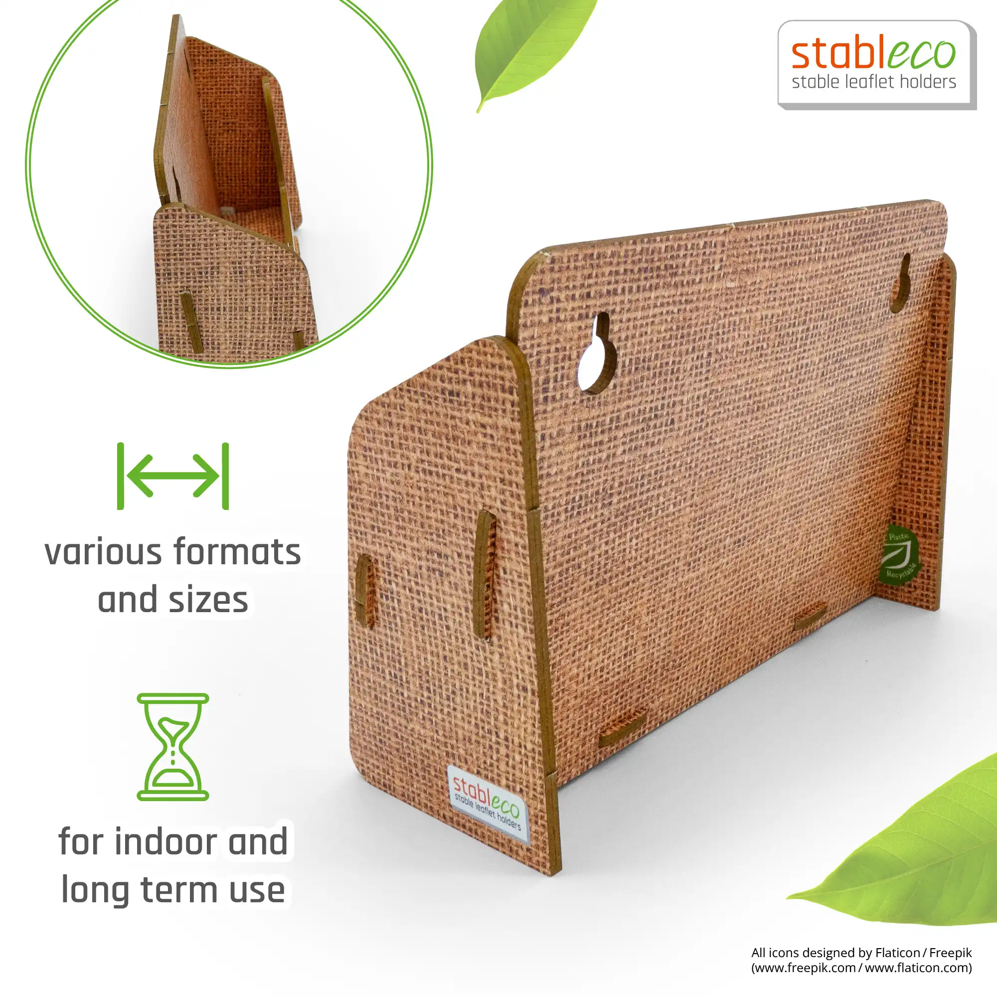 - No Plastic, just Paper! –die Wandflyerhalter und Prospektständer von stableco sind die Alternative zu Kunststoff. Die Aufsteller sind ökologisch, nachhaltig, sehr gut recyclebar. Werben auch Sie mit guten Gewissen